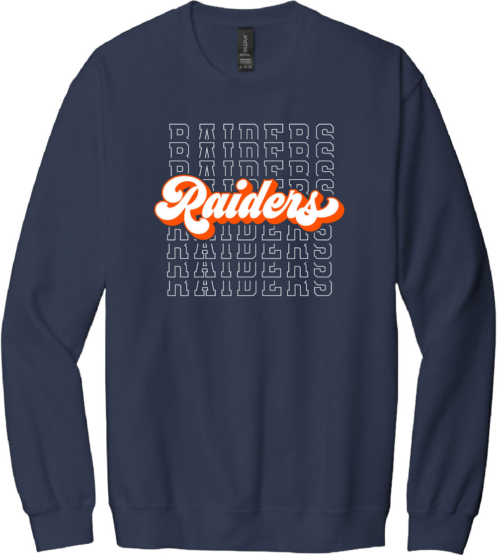 Printed on a Navy Gildan Softstyle 80/20 ring spun cotton / poly blend unisex crewneck sweatshirt.